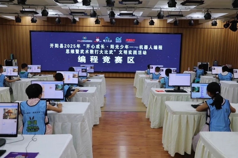近日,开阳县2025年“开心成长·阳光少年——机器人编程思维暨武术散打大比武”文明实践活动在云开广场举行。来自开阳、清镇、修文、白云、南明地区的近400名青少年同台竞技,在科技与体育的激情碰撞中绽放青春风采。